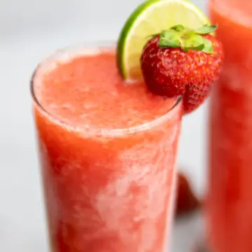If you would rather the lemonade version of this drink, check out my Frozen Strawberry Lemonade Vodka Slush!